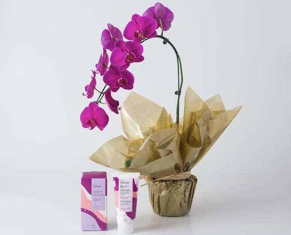 Cores vibrantes para alegrar a vida de uma pessoa querida! A orquídea Phalaenopsis pink é uma maneira elegante de presentear! Com uma haste, plantada e já embrulhada para presente torne junto com um kit lindo da Natura Tododia.